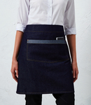 70% cotton/30% polyester. Easy care fabric. Contrast fabric ties with metal eyelets. 36cm wide centre pocket with contrast trim, including pen compartment. Width 70cm. Length 50cm. Industrial wash 85°C. Domestic wash 60°C.