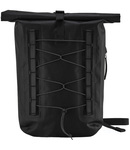 100% recycled 600D polyester. PU coating to the front, TPU coating to the back. Waterproof fabric. Padded adjustable shoulder straps. Waterproof main compartment with roll-top closure. Front bungee attachment. Side zip pocket. Webbing attachment loops with reflective accents. Tear out label. Capacity 18 litres.